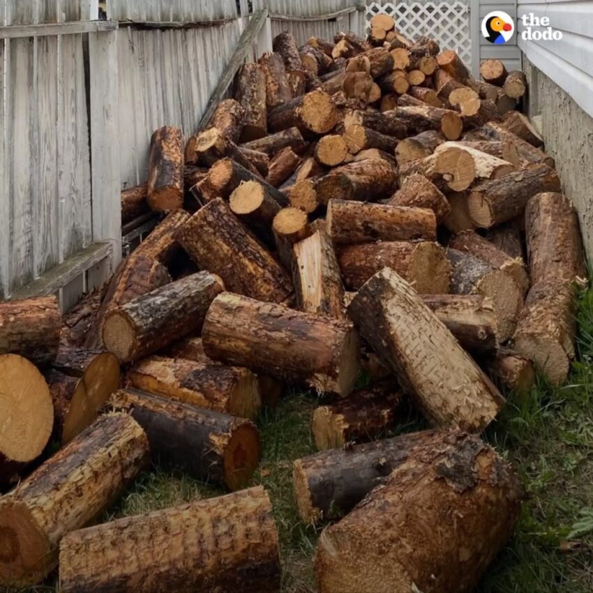 One day, Lucy noticed a huge pile of logs sitting outside — and she was immediately thrilled.