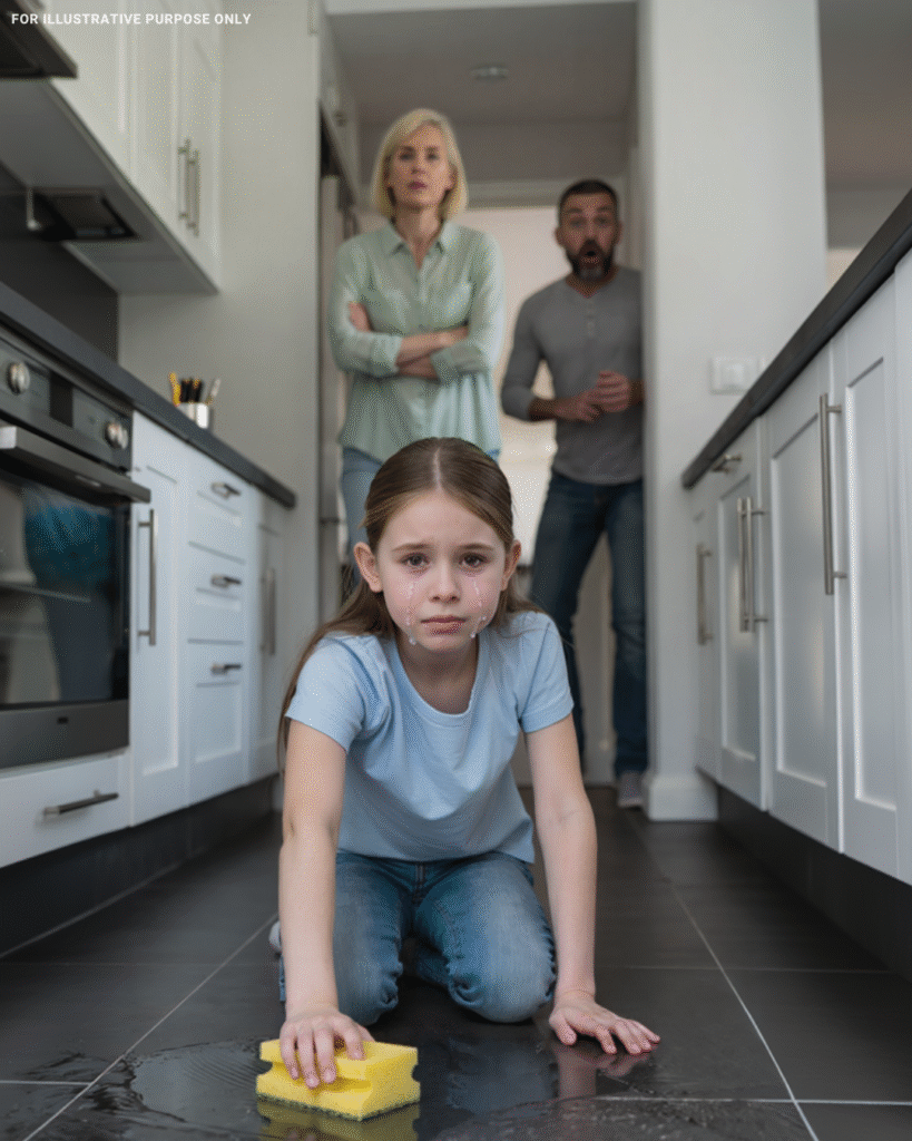 Laura’s voice was shaky. “She makes me clean all day… If I don’t, she yells… sometimes she hits me… and I can’t eat until I finish.”