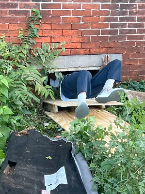 The row house had no floors and no back wall, which made it easy for Lucky to wander in, but very difficult to get her out.