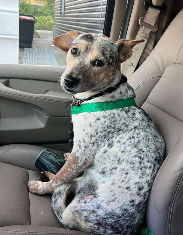 “She was a sweetheart,” Bell said. “She was just looking over at me. Her tail was wagging in the car. She was just so thrilled to be rescued.”