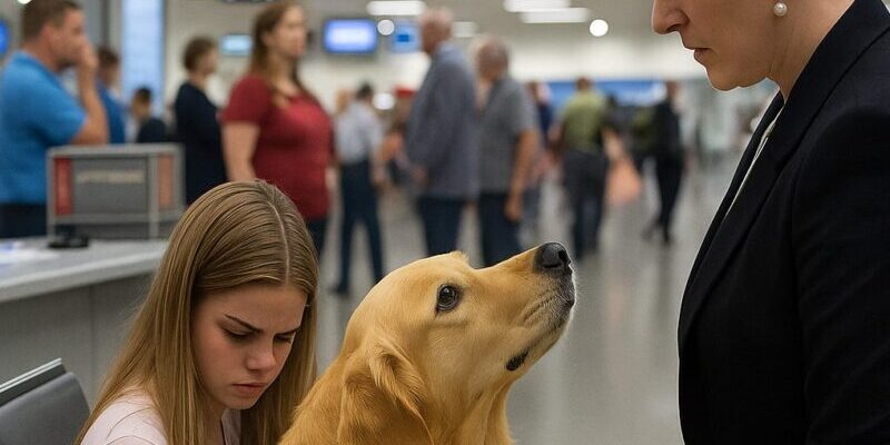 I offered to show her the documents, but she stormed to the counter instead, pointing at Max. Passengers whispered—some sympathetic, others skeptical. My heart raced. Max laid his head on my hand, grounding me.