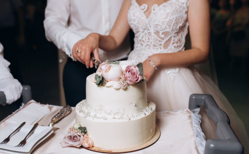 “Make sure you feed each other nicely,” my mother called out with a laugh, clearly remembering horror stories of couples smashing cake in each other’s faces. “That cake is too beautiful to waste!”
