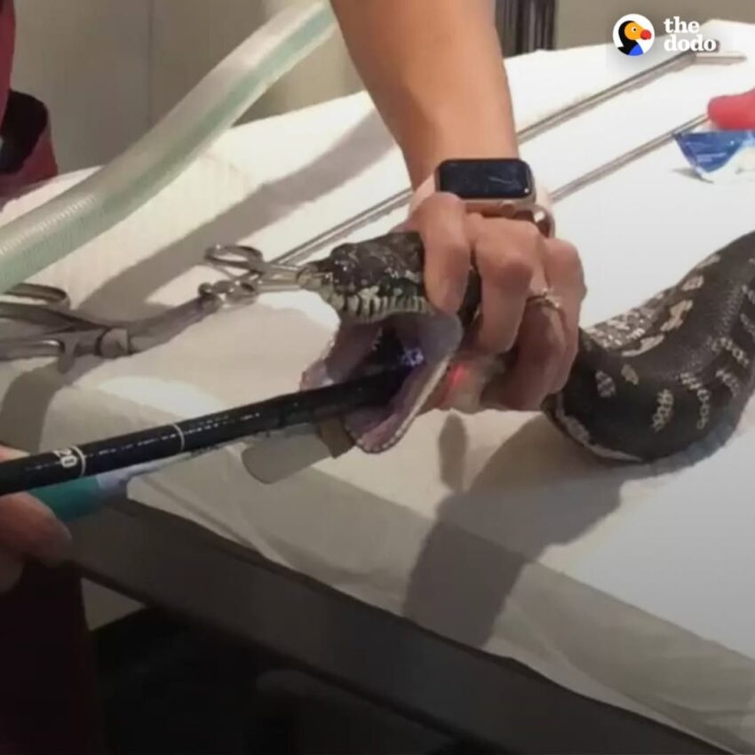Knowing she needed help, Monty’s family took her to Small Animal Specialist Hospital (SASH) in Australia, and the team there quickly sprang into action to figure out how to get the beach towel out of the apparently very hungry snake.