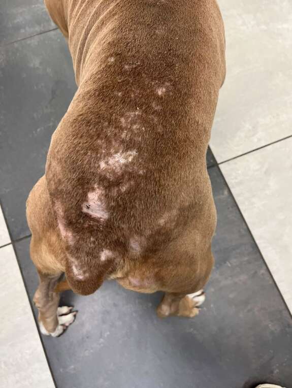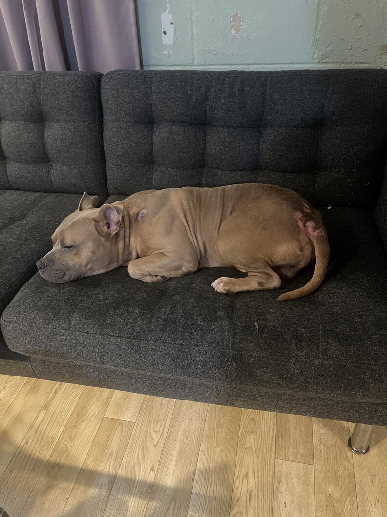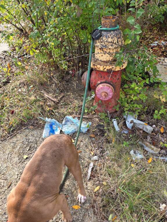 During a recent heatwave in Michigan, a woman noticed a frail dog sitting alone in a Detroit neighborhood. As she got closer, her heart sank: The skinny dog was tied to a fire hydrant and covered in scrapes.
