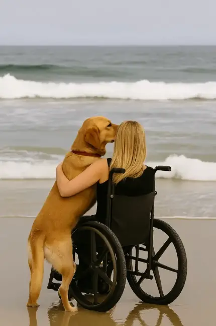 Every morning, Finn and I followed the same path: from the cottage, down the wooden boardwalk, across the dunes to the open beach. The wheels of my chair creaked faintly, the sand hissed under Finn’s paws, and the sea waited for us like an old friend.