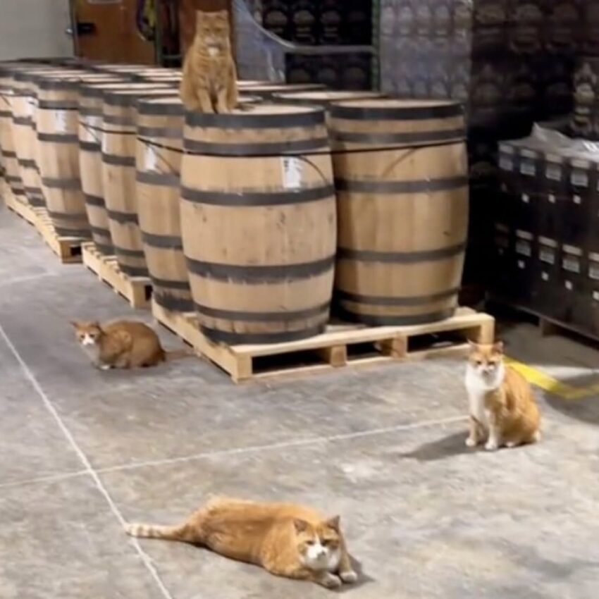 As if working at a distillery didn’t make these sisters unique enough, they’re also genetic anomalies. While only 20 percent of orange cats are female, all four of the girls have beautiful copper coats.