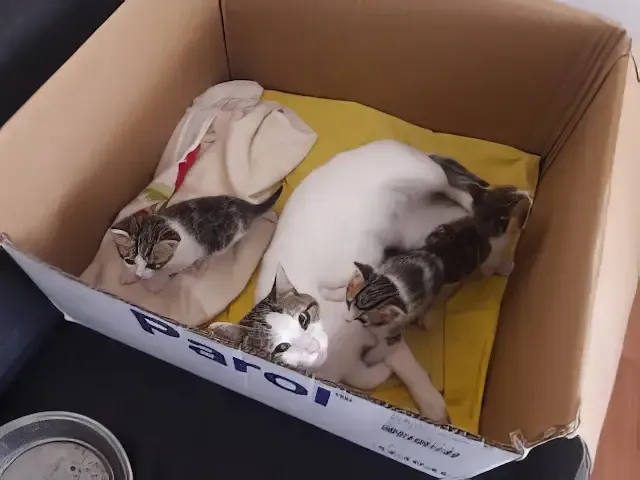 This act of kindness transformed the lives of the stray cat and her young, offering them a fresh start. The rescuer embraced the responsibility of caring for them, giving the kittens a chance to thrive under a watchful and nurturing eye.