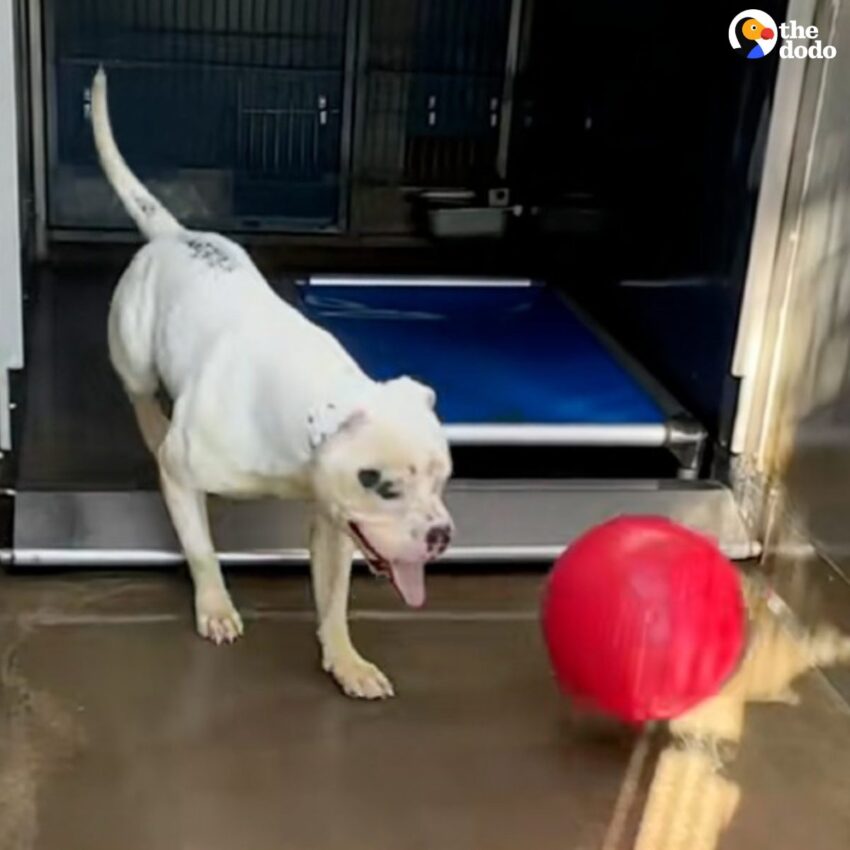Lonely Dog Spends His Days Playing Fetch All By Himself In The Shelter