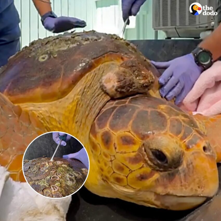 At first glance, Molly looks like any other loggerhead sea turtle, her reddish-brown shell moving gracefully through the water as she pops her nose up for air. But just two weeks ago, Molly arrived at The Turtle Hospital in south Florida covered in barnacles and rare tumors.