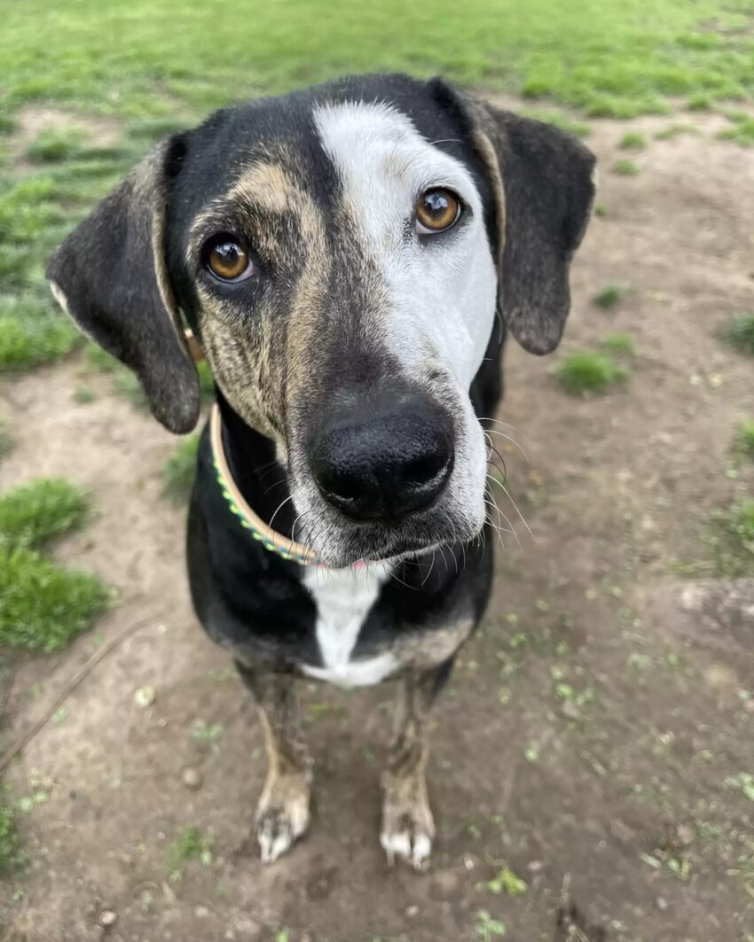 When rescuers in Oklahoma City arrived, they discovered that the coonhound and Labrador retriever mix had been caught in a massive dog-hoarding case.