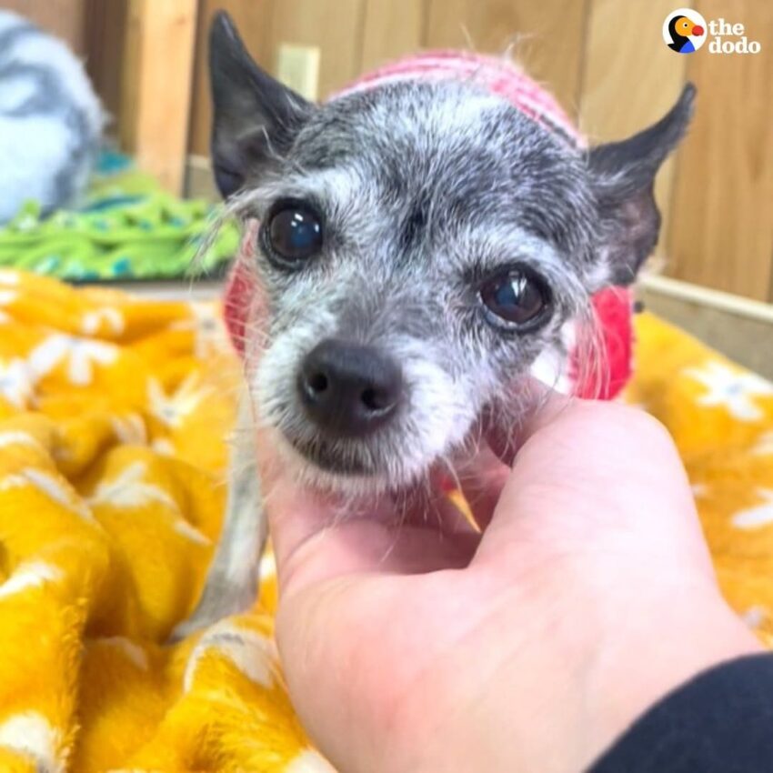 Apparently, Twinkle would scream all through the night because she wanted to sleep in bed with her new parents. The family had other senior Chihuahuas as well and wouldn’t let any of them sleep in bed with them, so they decided Twinkle wasn’t a good fit and brought her back to the rescue.