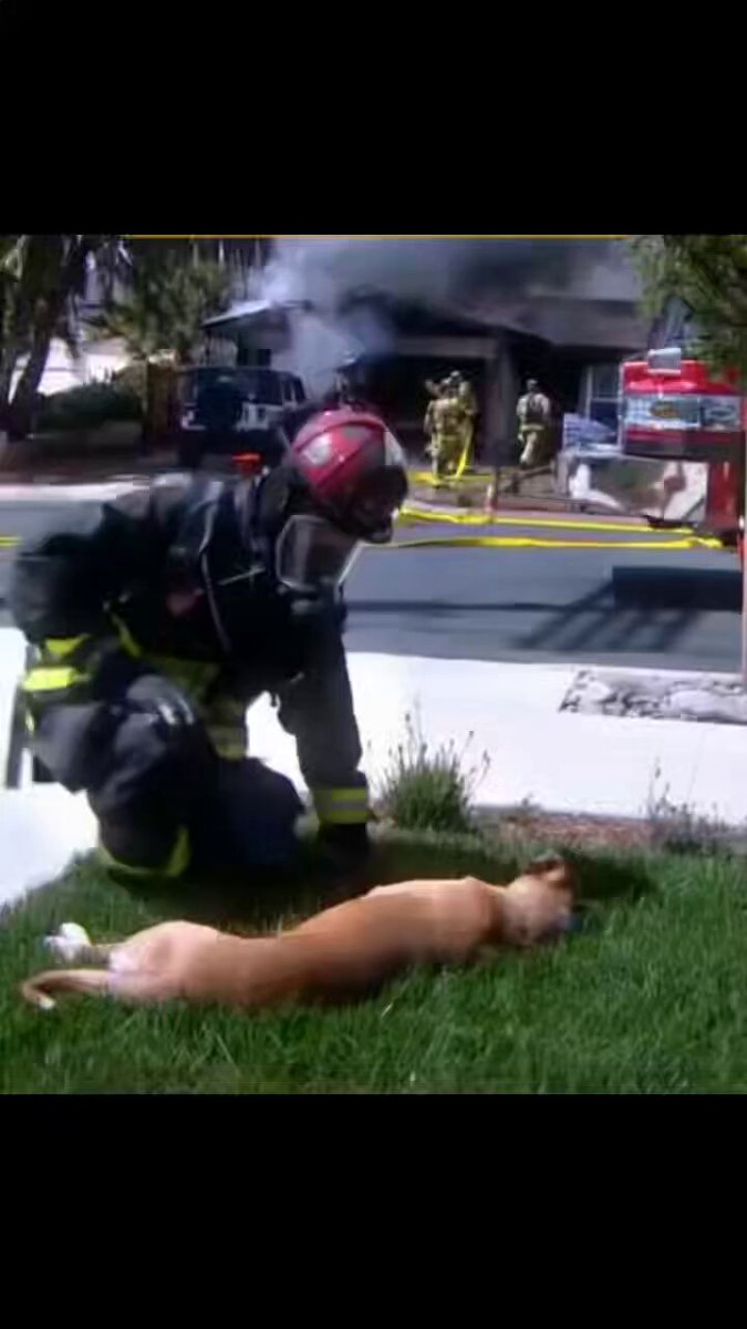 Once on the grass, he gently placed the dog down, his hands trembling not just from the heat, but from the gravity of what was at stake. In that moment, the firefighter did what he would do for any person in need — he started CPR. His training kicked in, but his heart was fully in it. He gave the dog oxygen, breathing life into the helpless animal, hoping against hope that his efforts would make a difference.