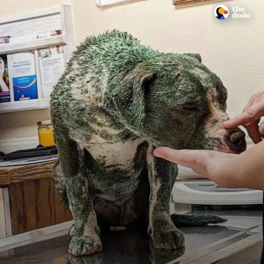 Alone, terrified and covered in toxic green paint, a small pit bull named Clover waited in a desert town outside Los Angeles, hoping someone would notice her.