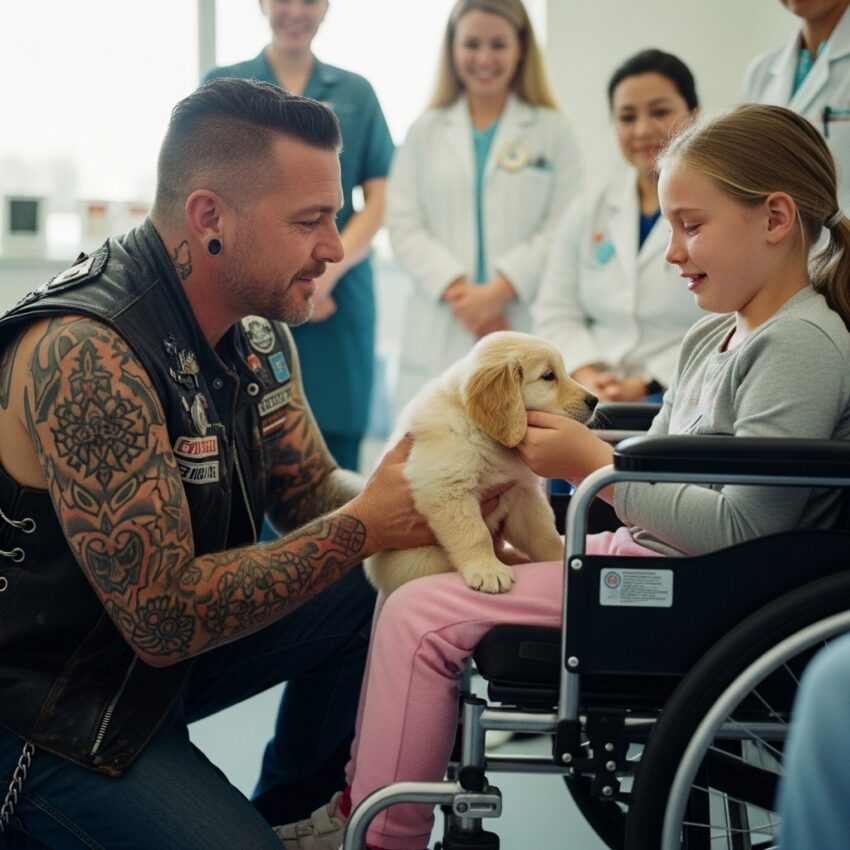 A Biker Gave a Puppy to a Disabled Girl — But When She Smiled for the First Time Since the Accident, Everyone in the Room Broke Down in Tears