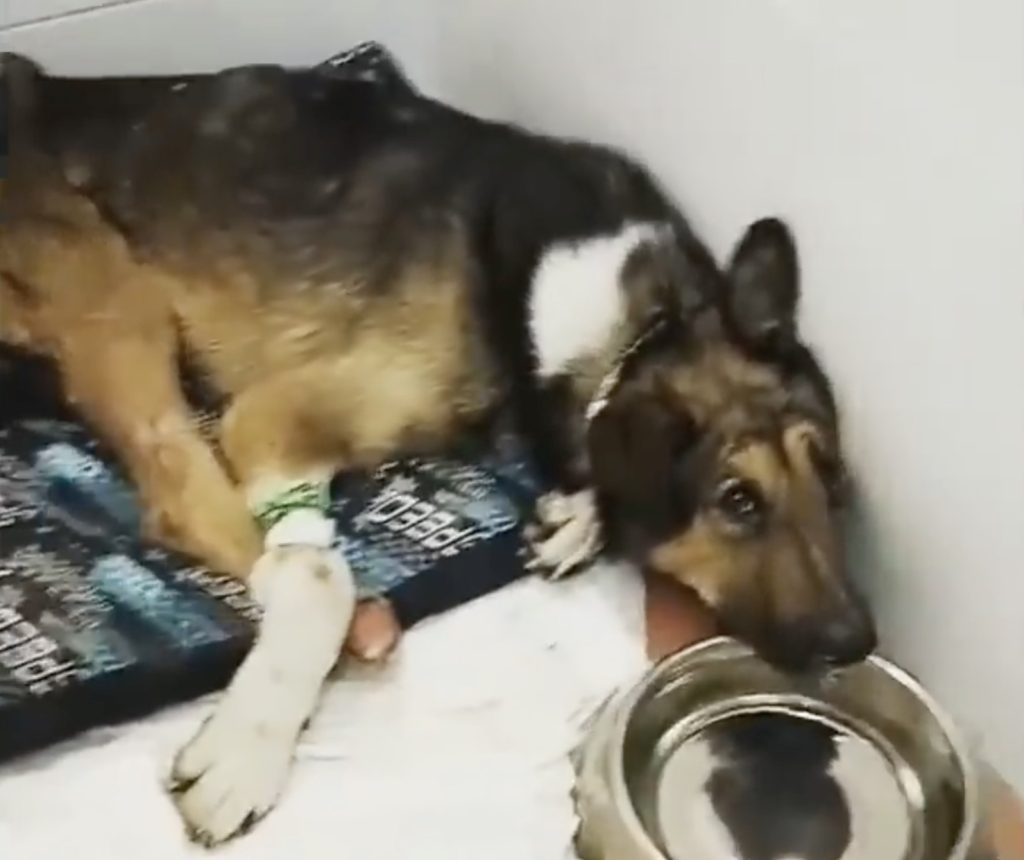 In those early days, hope felt distant — like a star too far to guide us. But the healers, wise and patient, carried a light within them. They did not see only a broken leg; they saw a spirit still fighting to live. Each evening, I sat beside him, whispering gentle words that I hoped could reach through his fear. I told him he was safe now, that the days of pain were behind him. He listened with his eyes, and little by little, something inside him began to change. One night, as the lamps burned low, he lifted his head and looked straight at me. His tail, weak but willing, gave a slow wag — the smallest gesture, yet filled with meaning.