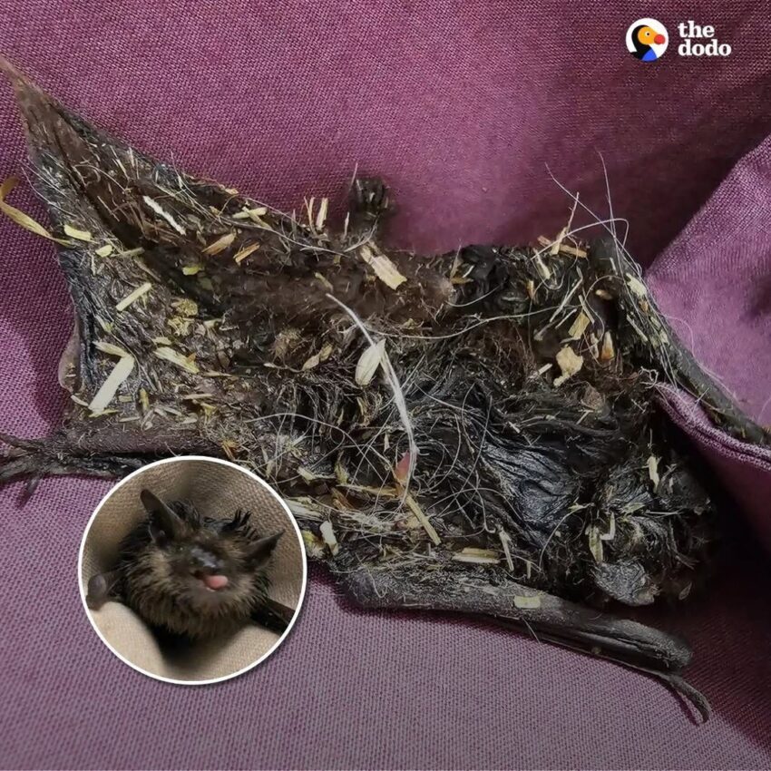 Tiny Animal Covered In Mystery Mess Looks So Different After A Bath