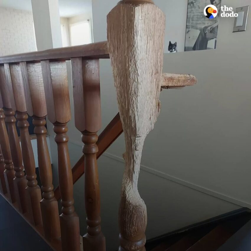 Schellevis has long since accepted that the banister would be transformed by her cat’s desire to claw at it — and, to her credit, she’s never tried to discourage him.