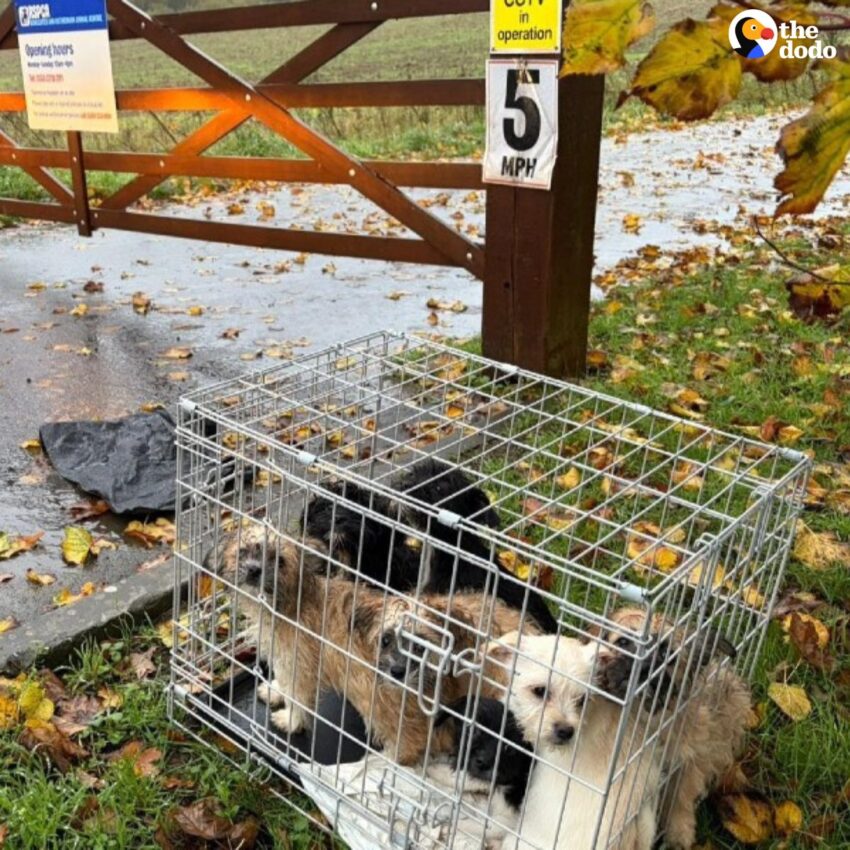 The employee’s heart dropped when they realized what had happened. Inside the crate were seven very scared puppies, abandoned all alone in the rain. There were so many puppies crammed into the tiny crate that they could barely move, and they had no access to food or water.