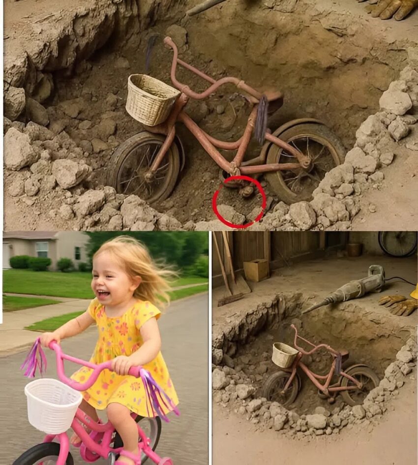 While digging through the garage floor to rebuild the foundation, the workers struck something solid. At first, they thought it was scrap metal, maybe leftover plumbing from previous owners. But when they removed more soil, a curved piece of metal emerged—painted a faded, rusty pink. A wheel followed. Then a handlebar.