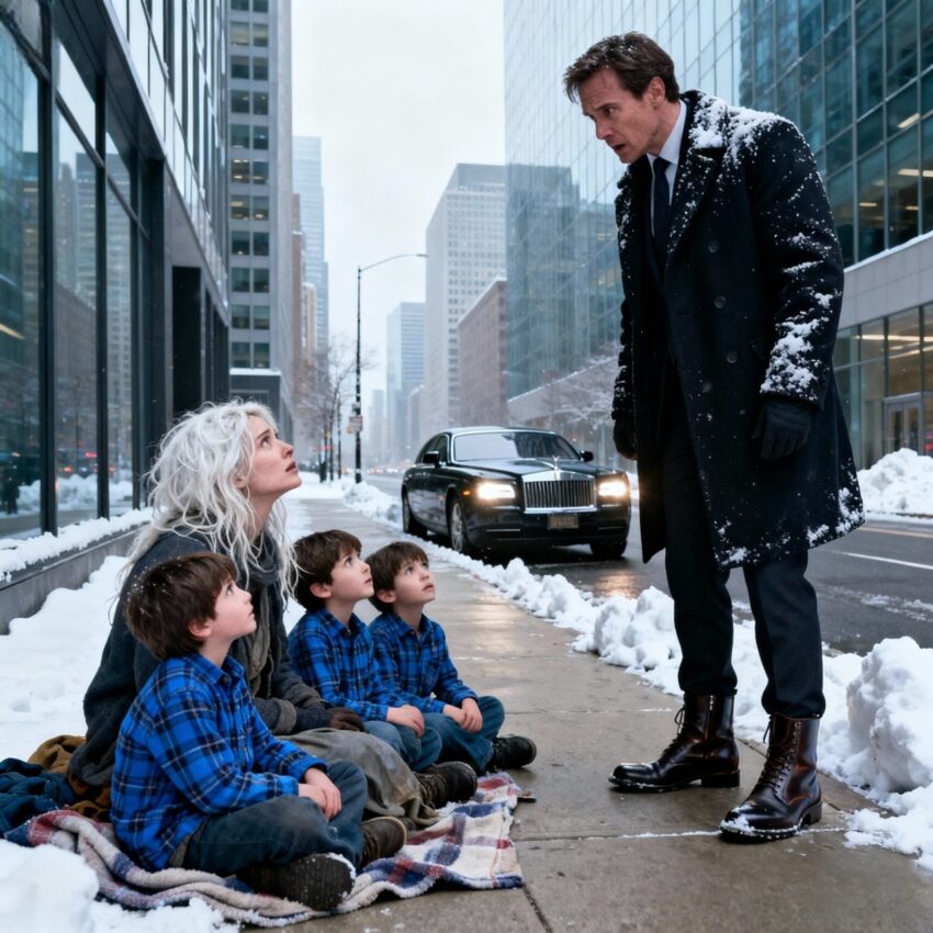 Ethan felt his knees weaken as her words sank in, realizing that the family he never knew he had was sitting right in front of him, shivering on a sidewalk while he had spent years chasing success that suddenly meant nothing at all.