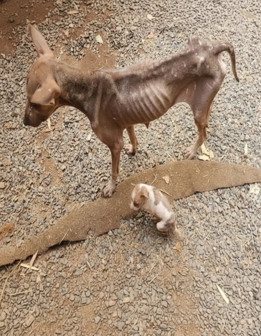 In the blistering heat of a dusty Kenyan highway near the bustling town of Nakuru on a sweltering afternoon in late October 2024, a routine journey for a group of Dutch overland adventurers took an unforgettable turn. What began as a scenic drive through the Rift Valley’s golden savannas—dotted with acacia trees and distant Maasai herds—abruptly halted when their modified Toyota Land Cruiser screeched to a stop amid a cloud of red earth. There, amid the gravel and scattered soda cans discarded by passing matatus, stood a heartbreaking sight: a skeletal mother dog, her ribs protruding like the bars of a cage, weakly guarding a tiny, whimpering puppy no larger than a man’s fist. Her fur, patchy and marred by sores, hung in clumps over her emaciated frame, and her eyes—sunken yet fiercely protective—locked onto the strangers with a mix of defiance and despair. This was no ordinary stray; this was a fighter on the brink of collapse, and her vulnerable charge was fading fast. Little did the travelers know, this encounter would unravel a cascade of unexpected discoveries, testing their resolve and revealing a hidden web of survival in one of Africa’s toughest landscapes.