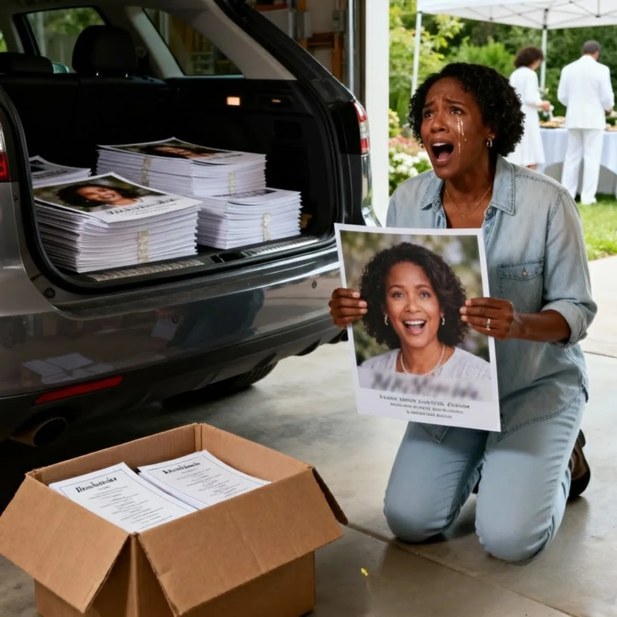 I found a stack of my own OBITUARY POSTERS hidden in my husband’s car boot. The date of d£@th printed on them is TOMORROW….- tamy