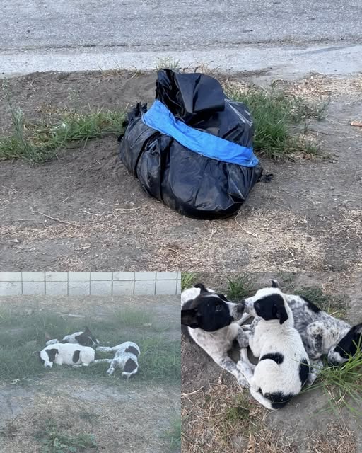 What made the scene even more devastating was the puppies’ behavior. They lingered near the bag, unaware of the truth. To them, their mother was still nearby. They stayed close, as if waiting for her to emerge, to feed them, to protect them—completely innocent to the loss they had already suffered.