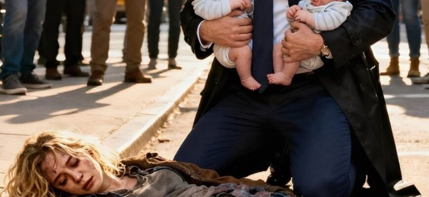 Una mujer sin hogar se desplomó al borde de la carretera, mientras sus gemelos de dos años lloraban desconsolados… y él quedó impactado al descubrir que los niños se parecían exactamente a él.