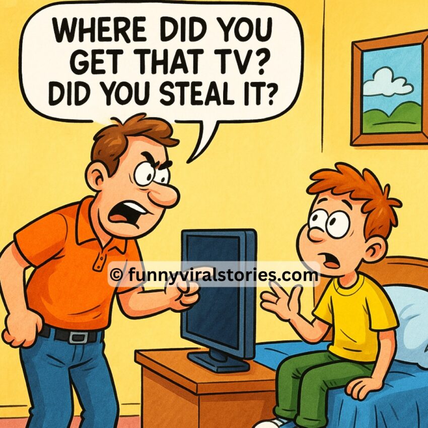 A dad walked into his 12-year-old son’s bedroom and was shocked to see a 42-inch plasma TV. When he got home from school, he asked,