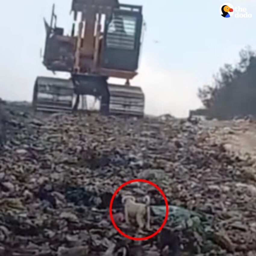 “The big machine was rolling down the rubbish and [the puppy] was just right there, in line to be crushed,” Tia said in a video for The Dodo.