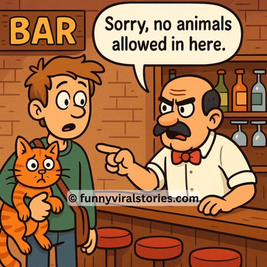 To the bartender’s surprise, the cat speaks up:
