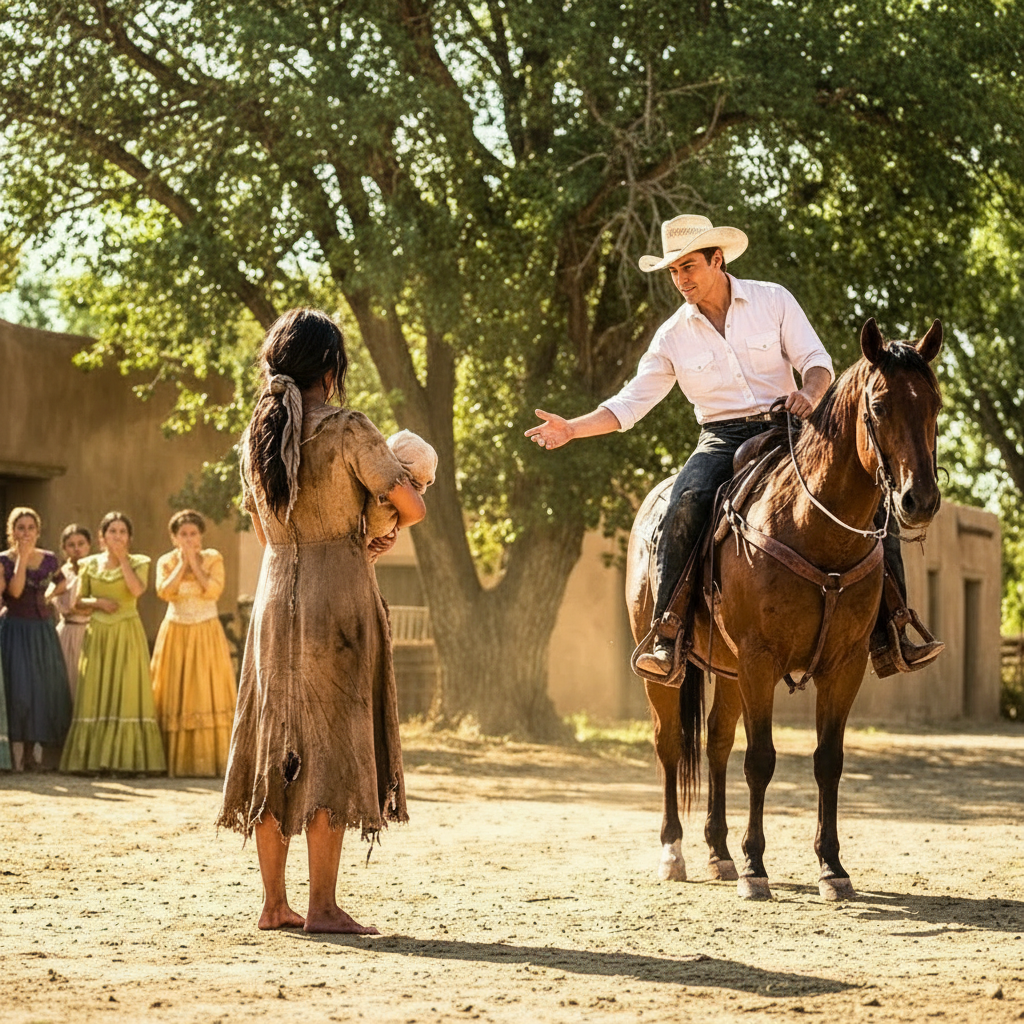 Rodrigo desmontó y caminó directo hacia ellas. El silencio cayó sobre la plaza. Las risas se apagaron como velas.