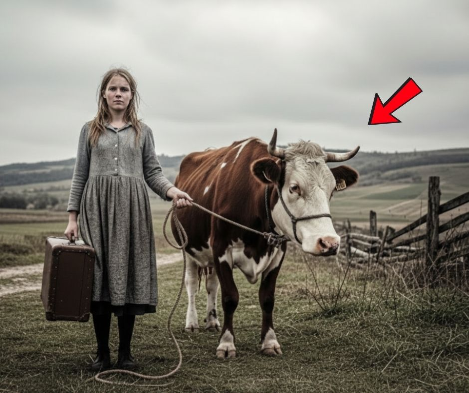 El hombre la miró de arriba abajo: la ropa sucia, la maleta, la vaca al final de la cuerda. Sus ojos se ablandaron.