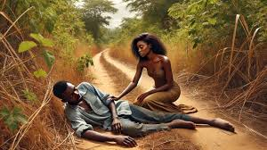 She walked slowly along the narrow bush path, wiping sweat from her forehead. The sun was hot and the ground was dry. Her heart was heavy. Her whole body was tired. Then suddenly, she heard something. It was a soft groan, like someone was in pain. She paused. Her eyes scanned the bush beside the path. The sound came again. Curious and afraid, she stepped closer and gently pushed some branches aside. Her heart stopped for a second.