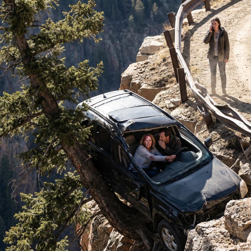 The moment the car shot through the guardrail at Raven’s Spine Pass, I felt the world tilt into slow motion. Metal screamed. My husband Daniel’s hand flew across my chest, shielding me as we plummeted toward the rocky gorge. We should have died right then, but fate—or maybe physics—wedged us into a massive spruce tree jutting out from the cliffside. The car hung at a cruel forty-degree angle, the chassis groaning under our weight.