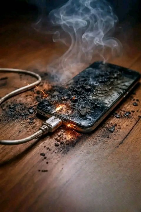 HOLY SHIT! The power strip behind the couch wasn’t just sparking, it was spewing fire like a carnival dragon! The “fixed” charger had caused a massive short circuit because it was bent and forced. The cheap plastic of the power strip couldn’t handle the overload and caught fire like gasoline.