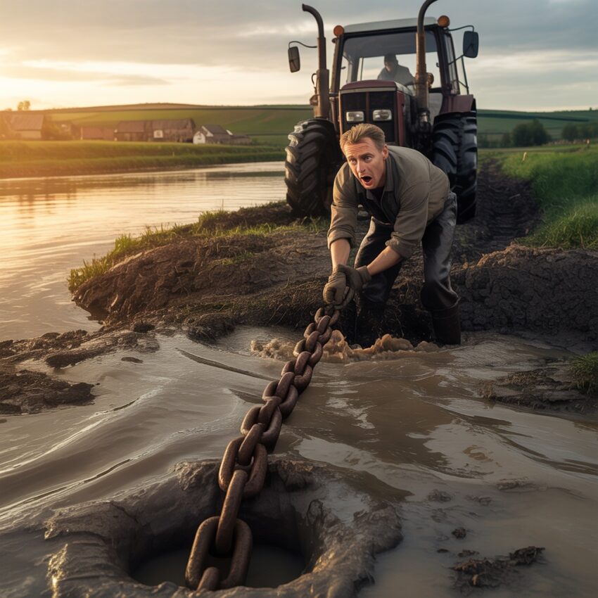 He hooked the chain to a steel cable attached to his tractor, securing it with the kind of knots he’d learned decades ago, tested and reliable. Then he climbed back into his seat, started the engine with a roar that echoed across the river valley, and pushed the machine to full power. The wheels spun, throwing up great clods of mud and grass, digging themselves deeper into the soft riverbank. The ground trembled beneath the strain, and Dmitri could feel the tractor straining against the load, the entire frame shaking with the effort.