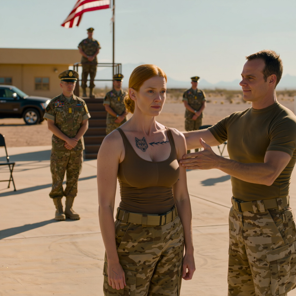 Victoria understood the trap: comply and expose the tattoo—or refuse and face court-martial that would eventually expose the same truth. She reached for the zipper with movements that appeared calm despite knowing the decision would change everything. The metal teeth parted with a sound that seemed too loud in the desert quiet. As the fabric fell away to reveal the plain olive tank top beneath, Victoria adjusted her posture—and the ink surfaced into light.