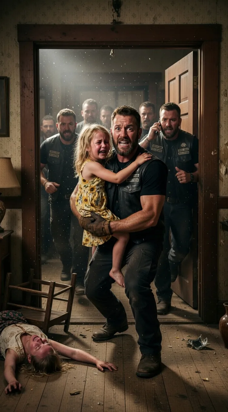 One second the Black Vultures Motorcycle Club was idling in a long row outside the Rust Lantern Bar, engines rumbling like a storm held on a leash. The next, a tiny barefoot child in a yellow flowered dress burst from the tree line and stumbled straight into the center of the road, her pale legs streaked with dust, her cheeks soaked with tears.