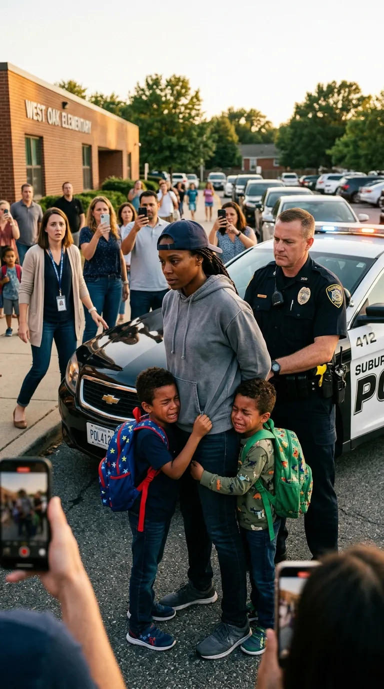 Naomi looked at the nearest news van just pulling up to the police line. Then at the row of parents still filming behind barriers. Then beyond them, to a man in a maintenance uniform standing too still beside a utility pole, one hand pressed to his earpiece.