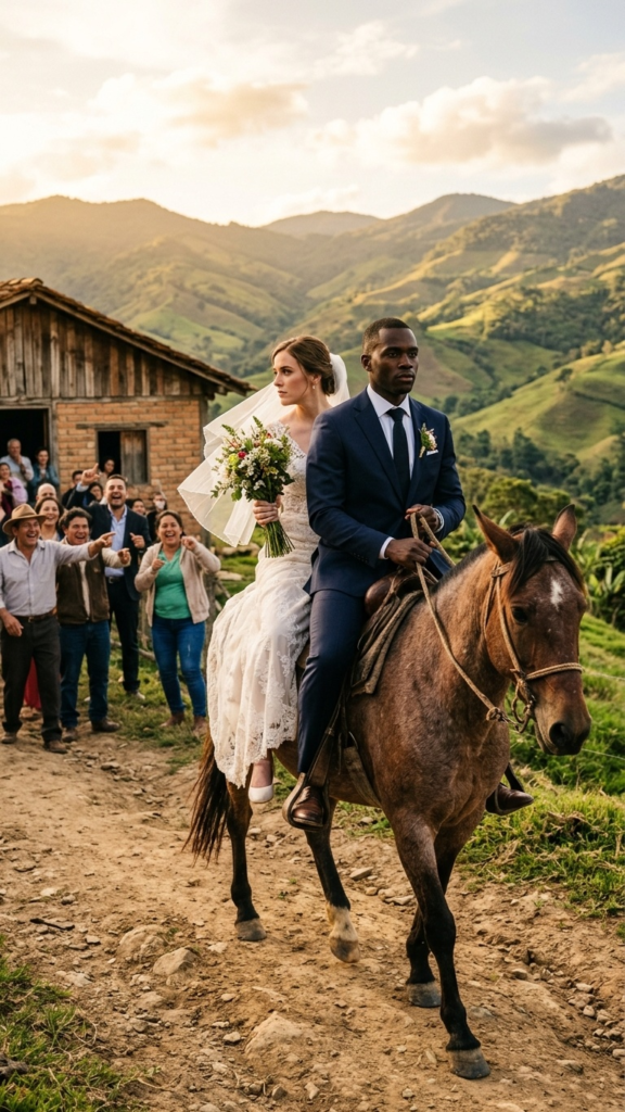 O dia da cerimónia foi simples, realizado na varanda do rancho. Mas a humilhação estava à espreita. Quando o padre terminou a bênção, Mateo foi buscar o seu transporte, tal como havia prometido. O cavalo velho foi trazido para a frente da casa, manso e de trote lento. Alguém no fundo soltou uma gargalhada. Héctor endireitou-se e gritou para toda a festa: “Nunca vi uma noiva a sair num cavalo velho, nem nas piores novelas!” O riso espalhou-se como fogo. Elena sentiu o olhar de 100 convidados a julgá-la. Subiu para o cavalo com o queixo erguido e a garganta fechada, afastando-se pela estrada de terra sob as gargalhadas da sua própria família. A humilhação era insuportável, mas ela não olhou para trás.