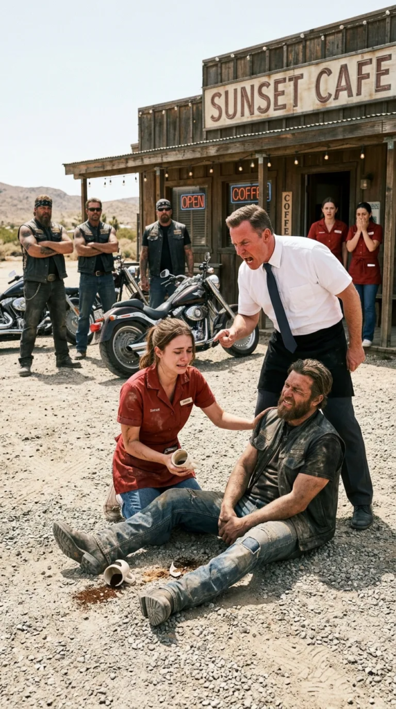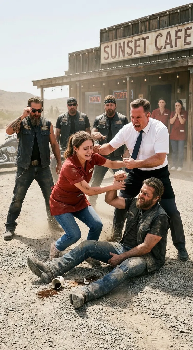 The first thing people noticed about the Sunset Cafe was the sign leaning over the highway like it had been holding on through bad decades and worse men. The second thing they noticed was the smell—burnt coffee, hot oil, desert dust, and the faint metallic tang of truck exhaust rolling in from Route 17. By noon, the heat outside turned the gravel lot into a shimmer. By one, tempers usually started to boil.