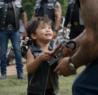That was the moment the huge biker stopped looking hard and started looking human.