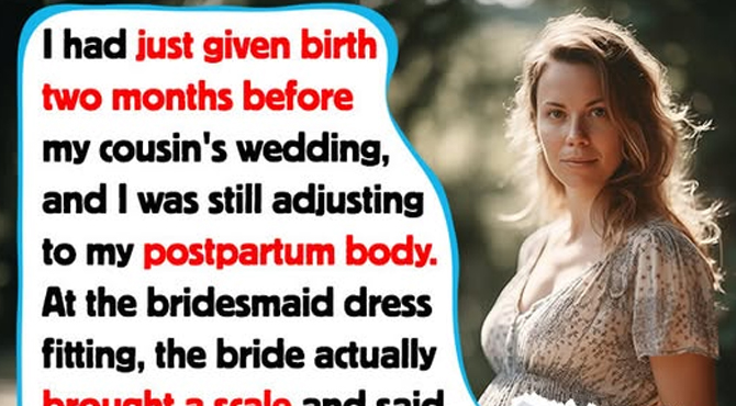 I had just given birth two months before my cousin’s wedding, and I was still adjusting to my postpartum body. At the bridesmaid dress fitting, the bride actually brought a scale and said, “No one over 140 is allowed to wear sleeveless.” I laughed, thinking she was joking. She wasn’t.