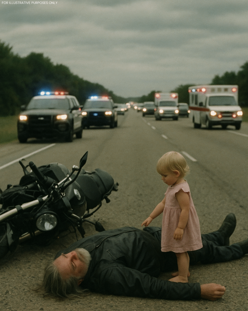 Her name was Sophie Maren, a child with tangled blonde hair, light-up sneakers, and a stubbornness that seemed too big for her tiny frame. From the backseat she had begun to thrash against her seatbelt, insisting between sobs that “the motorcycle man” was dying down below the ridge.