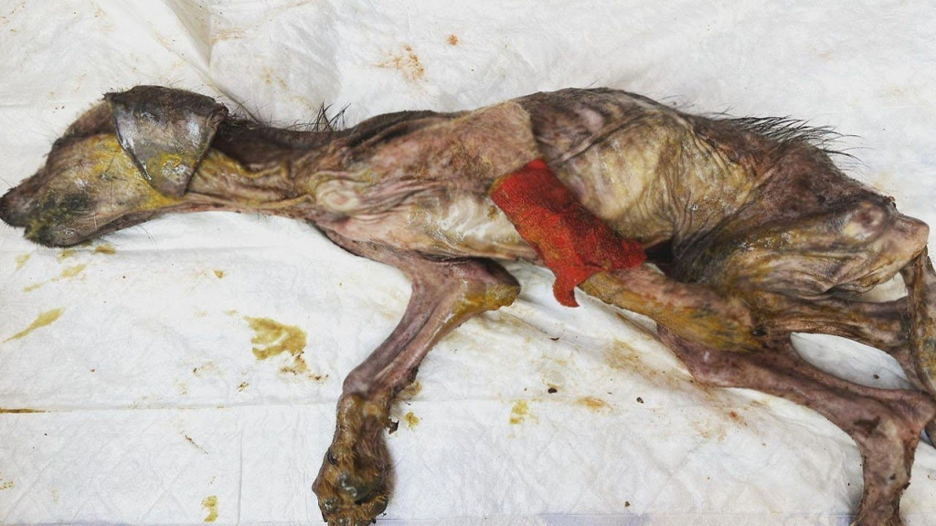 The condition of the two dogs was shocking; they were severely dehydrated, and their bodies were covered with oozing wounds.