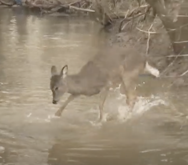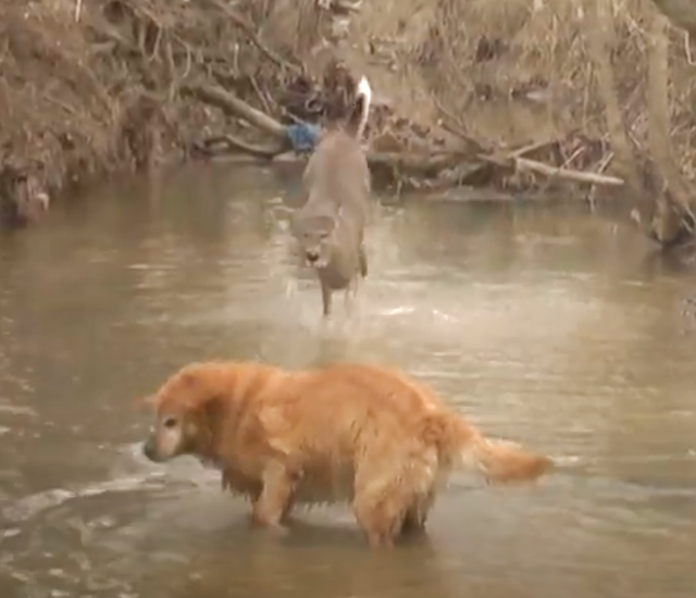 One particular day, Daisy’s playful personality shone through. While Yukon busied himself collecting rocks from a stream, a favorite pastime of his, the young deer did her best to capture his attention. Daisy splashed through the water, hopping and bounding around him with unmistakable “play with me” energy that dog owners would instantly recognize.