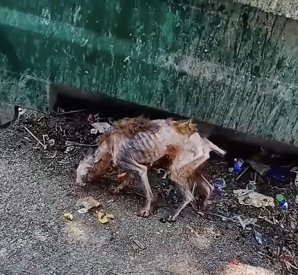 Seeing a dog in such a dire state, barely clinging to life, is truly heart-wrenching. This frail stray dog, once robust and lively, had been struggling to find food amidst heaps of garbage littering the streets for countless days.