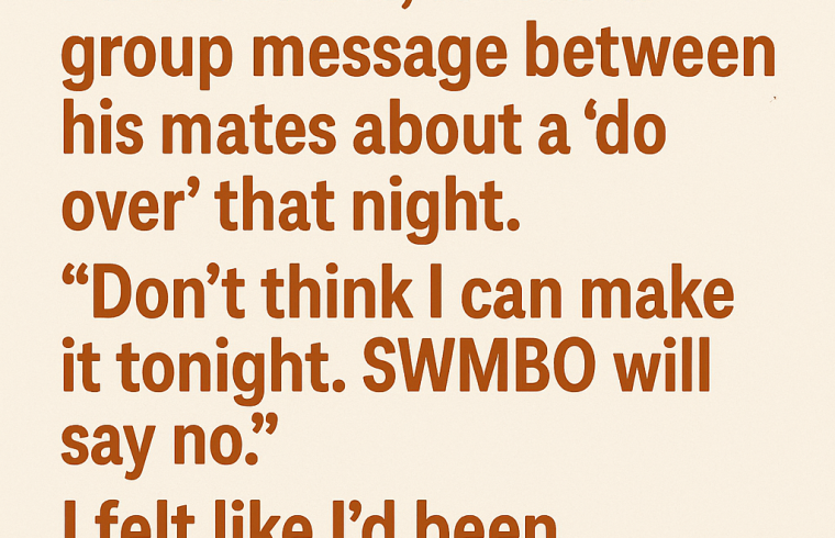 She blinked at the acronym, confused. When he got out of the shower, she asked casually, “What’s SWMBO?”