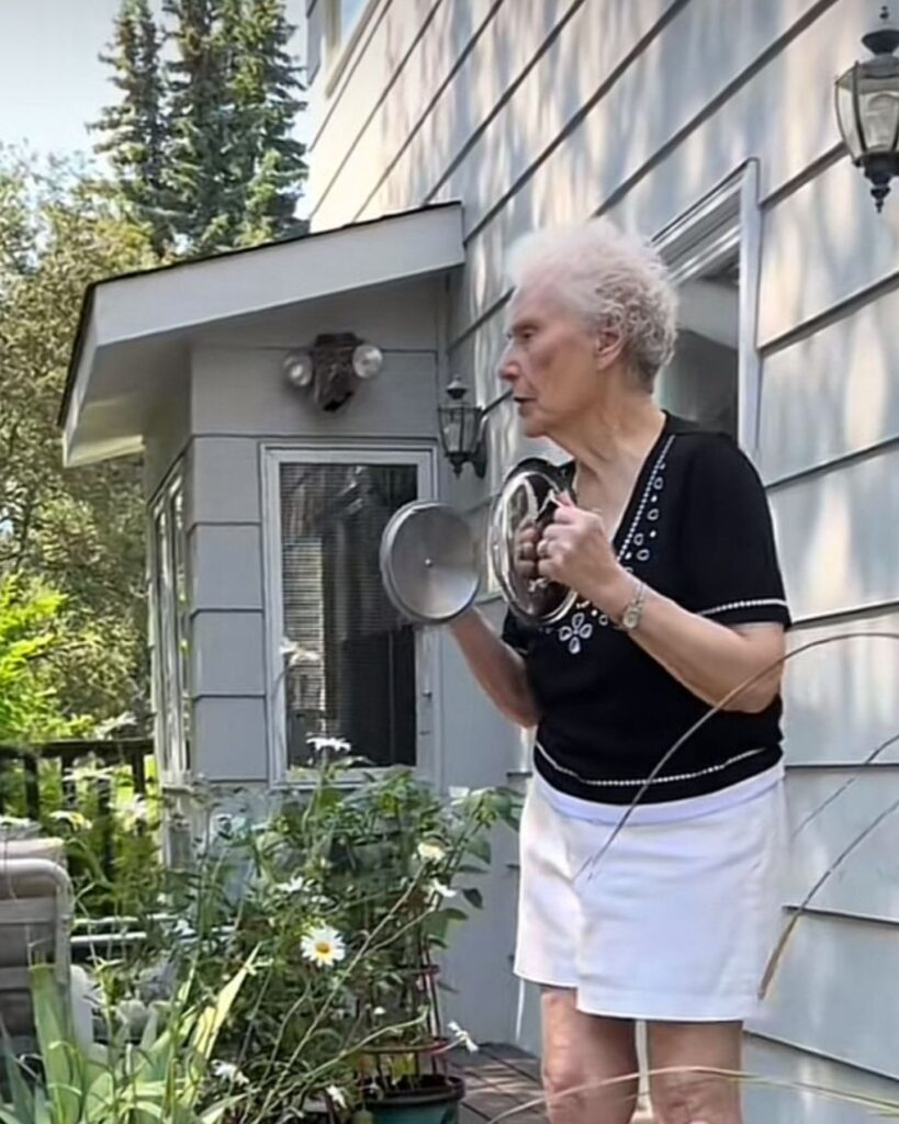 Now, Grandma trying to peacefully live alongside her new neighbors. When she goes out to water the plants, she softly claps a pair of metal lids together, hoping to scare off the bobcats without any conflict.